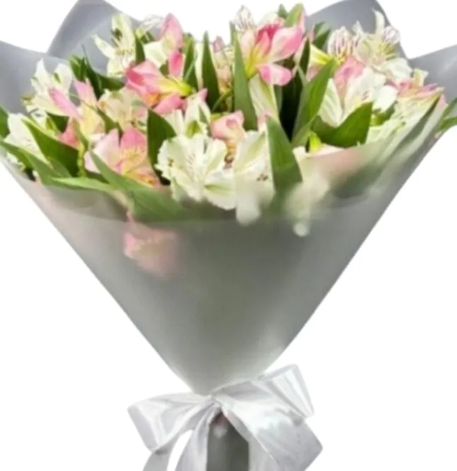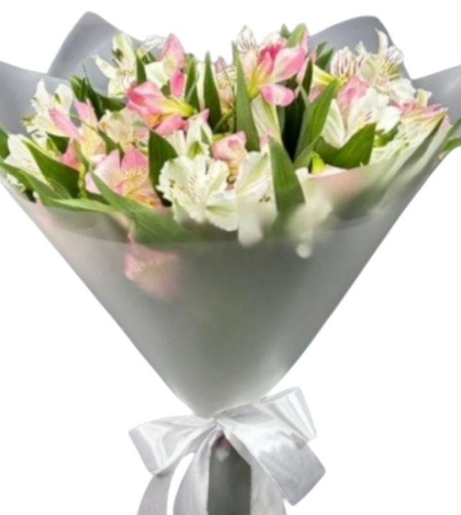 Состав букета : альстромерия (белая, розовая) — 11шт, упаковка, лента.