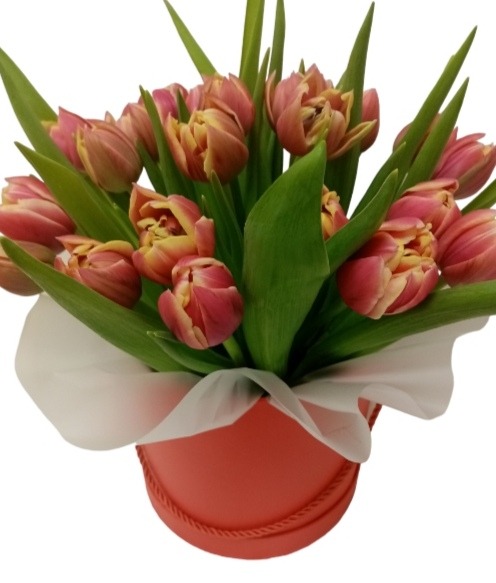 Состав : тюльпаны пионовидные — 25шт, коробка, оазис (флористическая пена).
